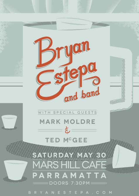I’ll be opening for old chum and label mate Bryan Estepa on Saturday May 30th at the Mars Hill Cafe Parramatta – we’ve long talked about doing a show together and finally found a mutually agreeable date. Bryan is a great performer and has just returned from a successful European tour – check out his tour diary here. There’s a rumour going round that we may possibly play a tune together. Tickets are really limited – this is a super intimate venue. Tix can be purchased HERE